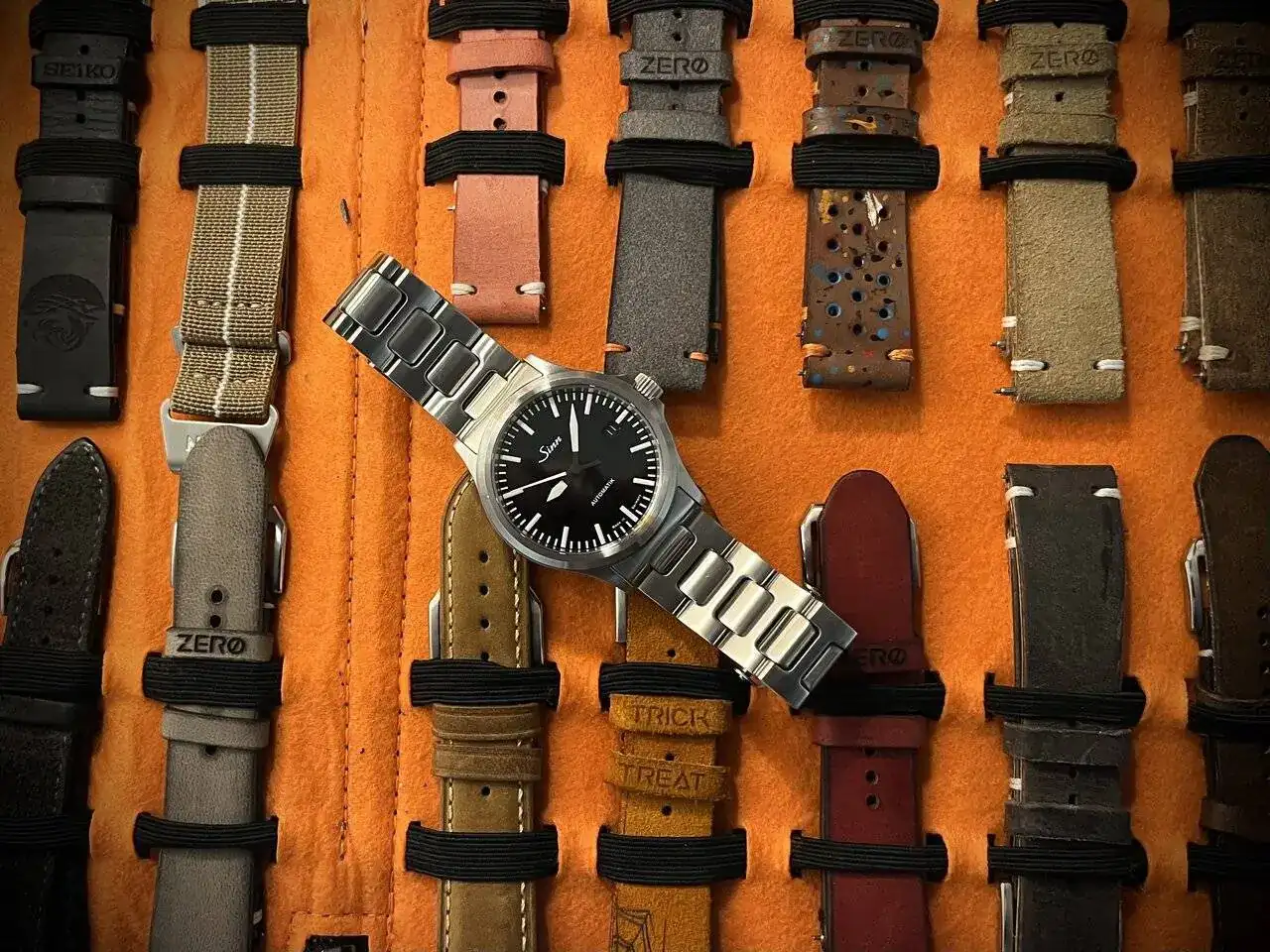 Menuda colección de correas. En tu caso no se aplica el dicho de "en casa del herrero cuchillo de palo". Aún así, aunque seguro que le queda bien cualquier correa, me encanta el brazalete de ese sinn, creo que nunca se lo quitaría.