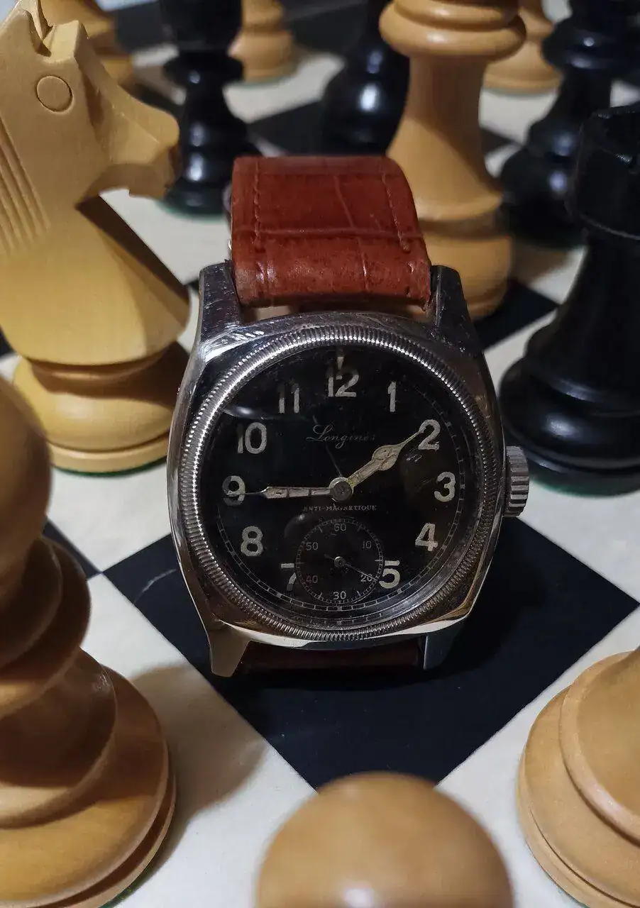 Longines vintage, con una caja que recuerda a los primeros Panerais. Ciertamente hoy va de joyas.Buen lunes e igual semana foro.