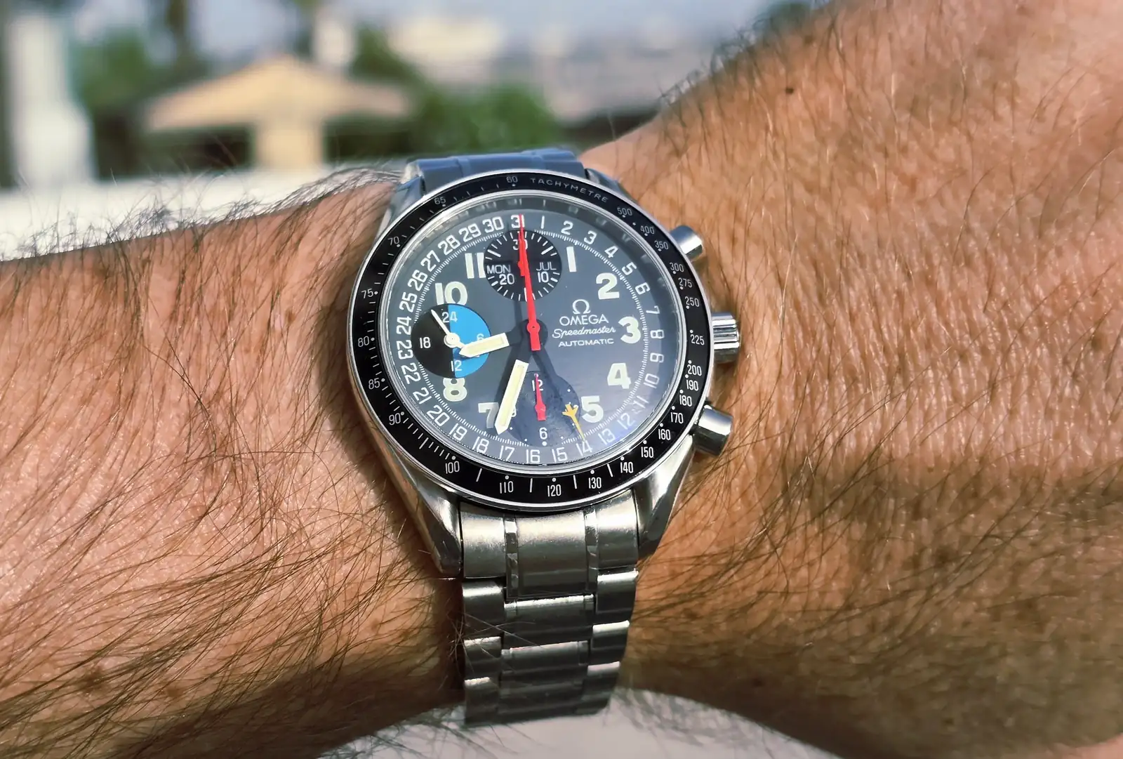 Con tanto colorín, desde luego es el Speedmaster ideal para primavera-veranoArrancando otra tórrida semana laboral con el triple date.