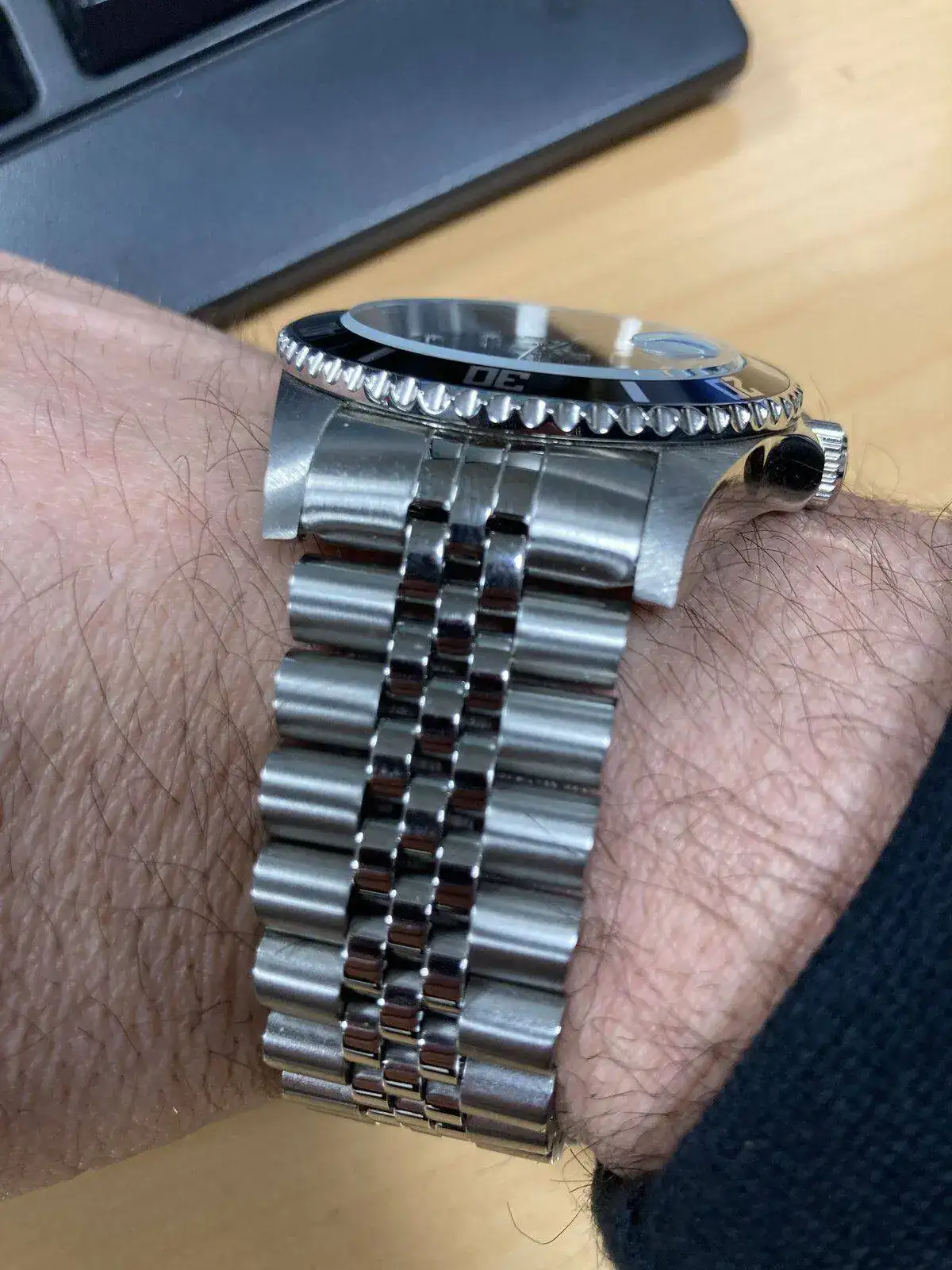 Bonito reloj, creo que es la primera vez que lo veo por estos lares. Queda muy bien para mi gusto.