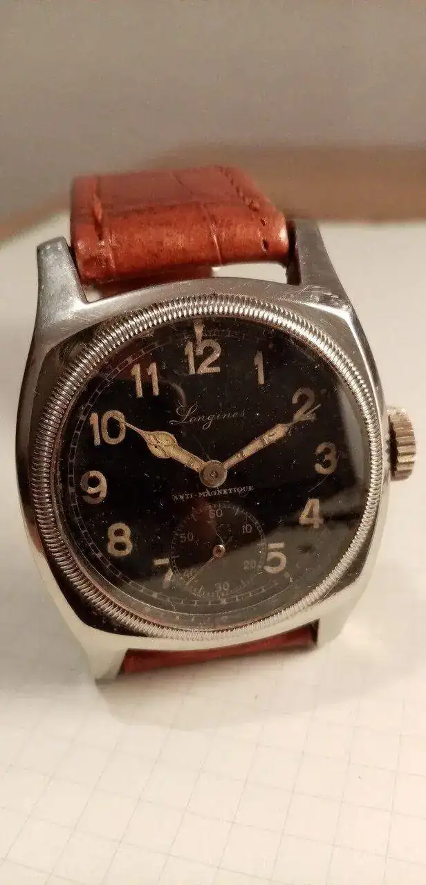 Y el Longines aviador que lo acompaña, es una edición limitada a 3000 piezas, que Longines fabricó para la armada checa, en los años 30.