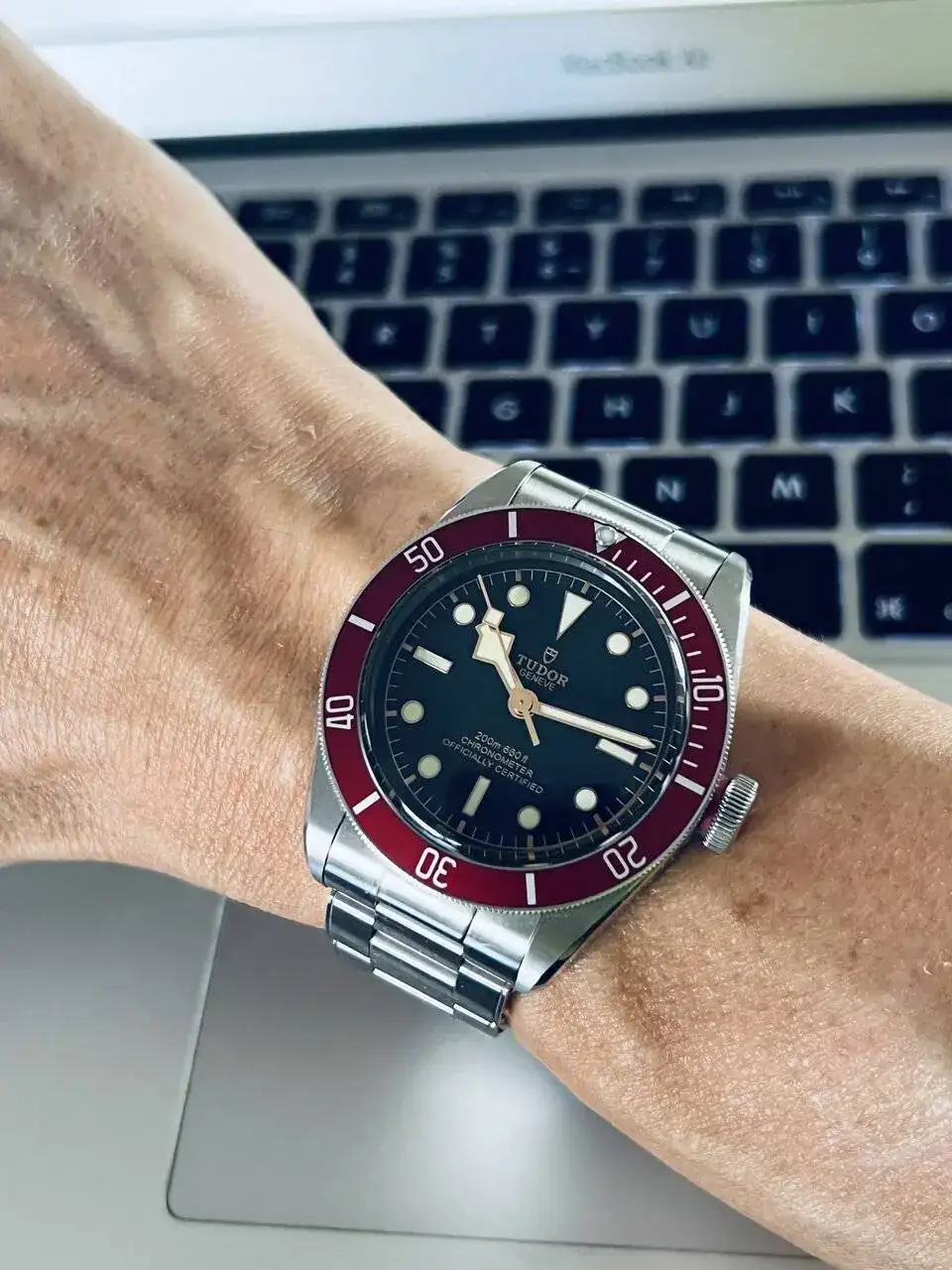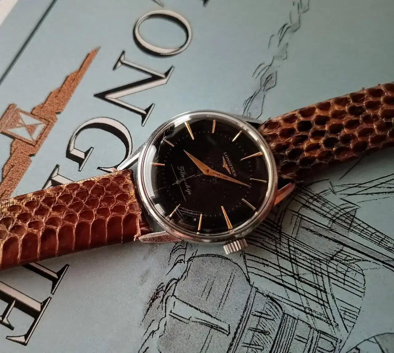 Es precioso. Y esa correa de 🐊 o de 🐍 le queda elegantísima con esa esfera negra y el cristal o plexy abombado. Guapísimo.¡Buenos días! Qué mala luz, por Dios... Con lo precioso que es este Flagship y qué poca justicia le he hecho