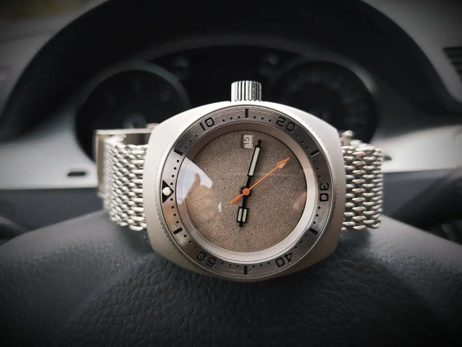 No compi, está modificado. Lijado el original y después arenado a presión.Me encanta el dial, es así de fábrica?