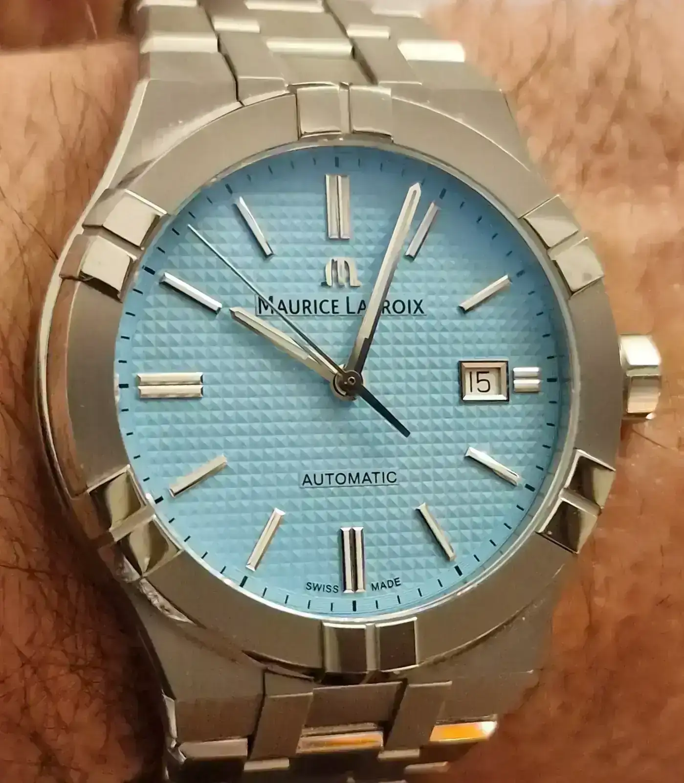 Es precioso 🤩, su color tiffany y el guilloche lo hacen increíble así como la combinación pulido /cepillado de caja y armis que se integran en un todo. Gran conjunto, aquí lo bordaron‼️Buen lunes tengais 🙂