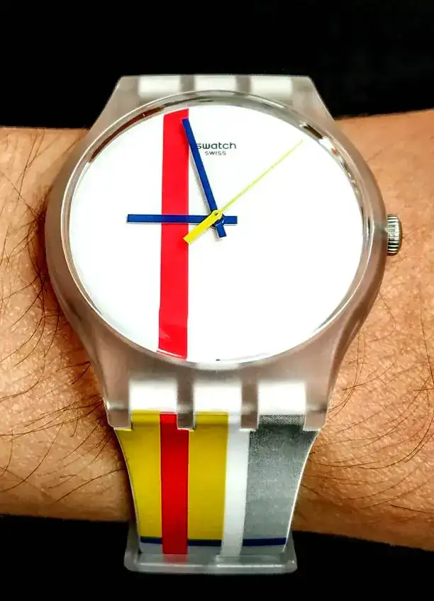 Vamos con un Swatch edición especial Mondrian para celebrar los 25 años del precioso museo Thyssen-Bornemisza en Madrid, además como referente a YSL como el diseñador que cambió la moda con sus creaciones.