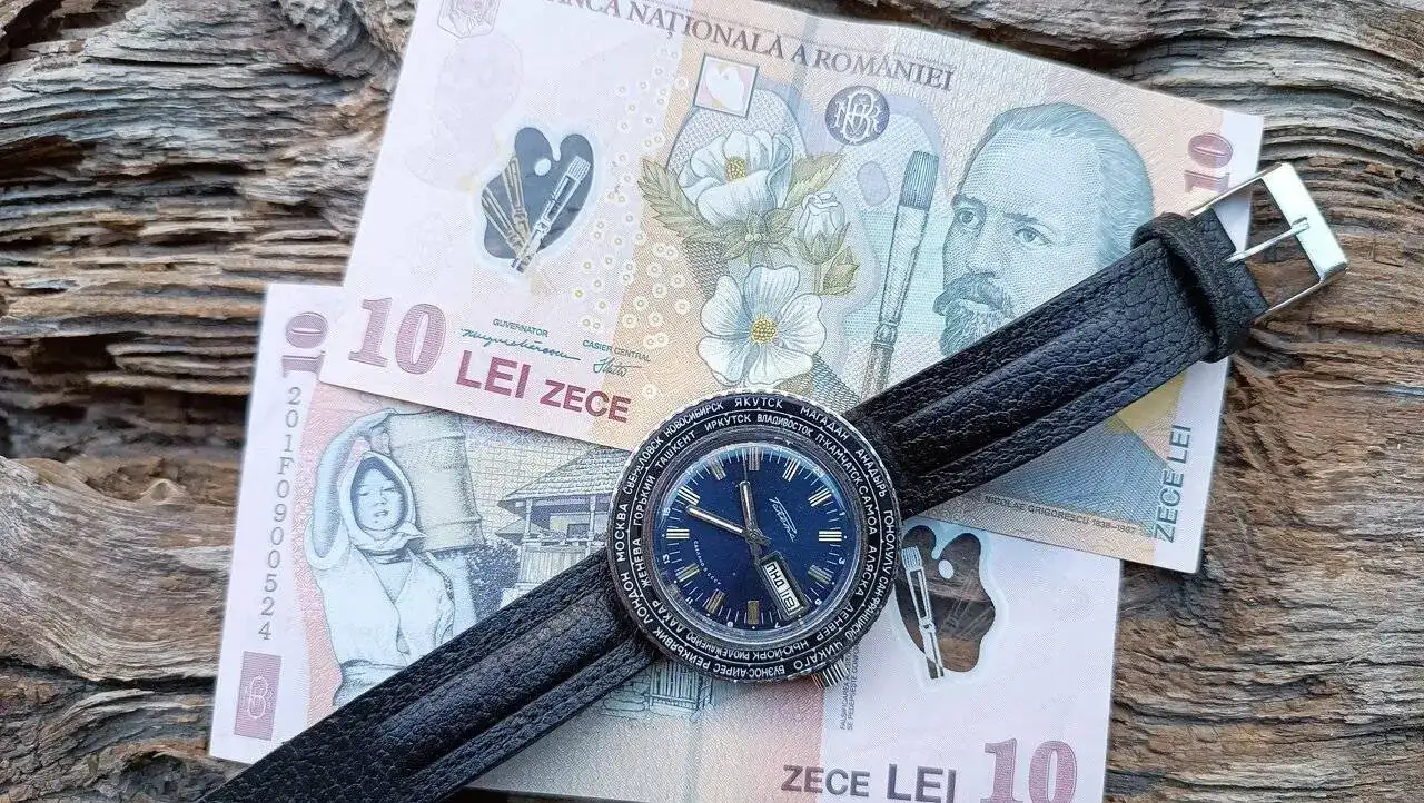 Bonitas fotos.Buenos días, Raketa (Cohete) modelo Goroda (Ciudades) y billetes rumanos dedicados al pintor Nicolae Grigorescu.