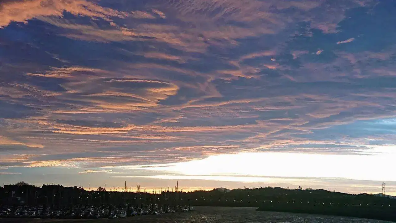 Y lo distinto que estaba el cielo esta mañana al amanecer en el mismo momento y lugar, según hacia donde mirases. Hacia la derecha
