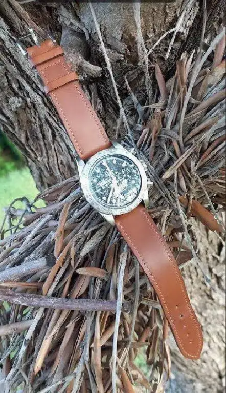 Hoy por la manana lavado el reloj con aqua de lluvia con la correa, el cuero de caballo tenia algo como laca encima, parecido a plastico, por lo menos me lo dicho mit todo, mi vida, mi amor.