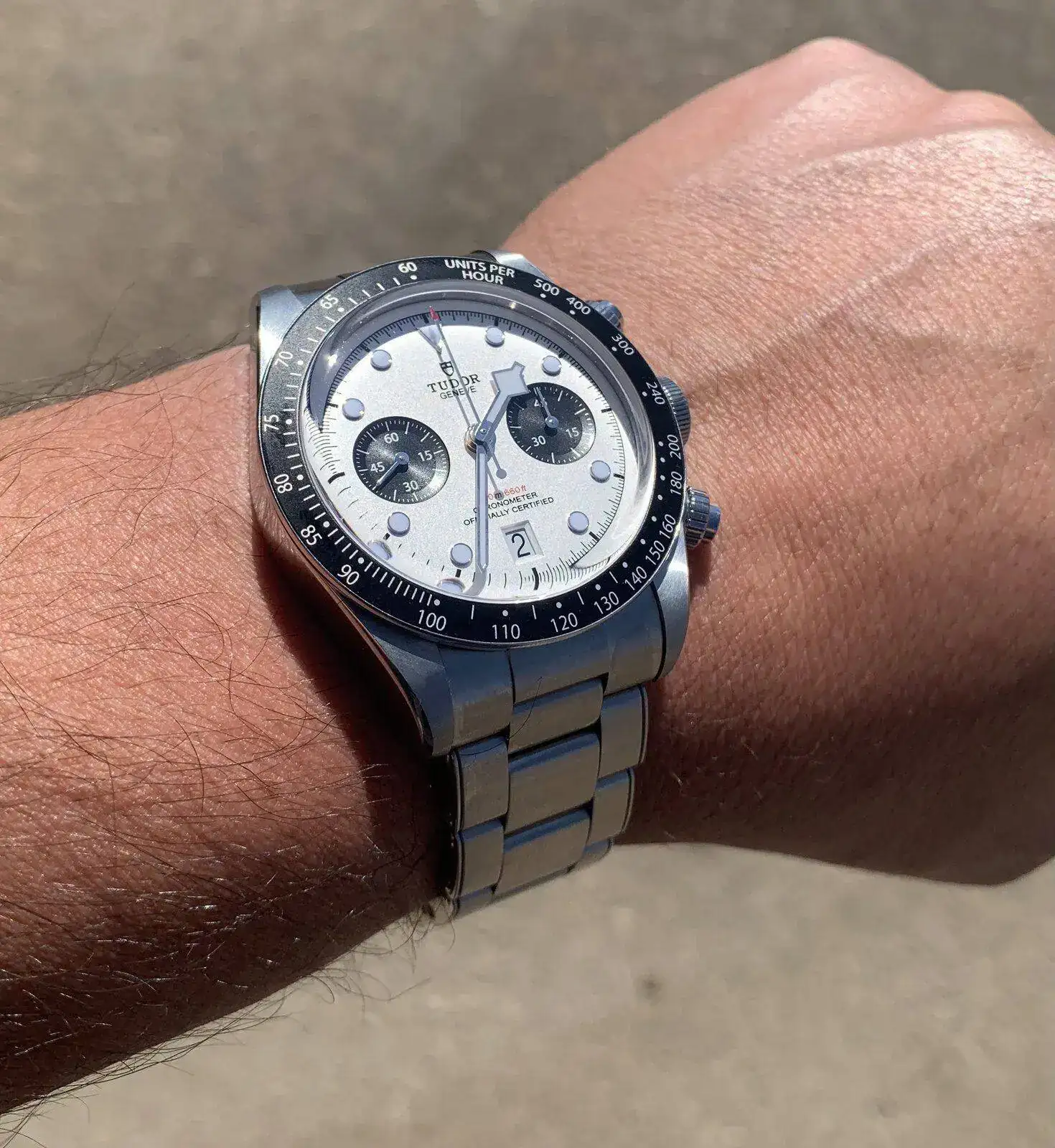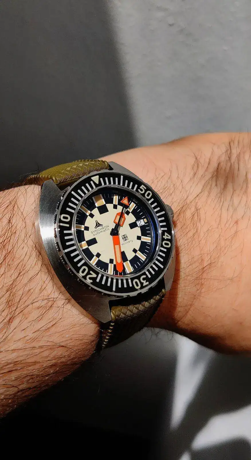 Muchas gracias, ha costado lo suyo, el centro del dial es un color al que yo le llamo"confuso", ni gris, ni azul, una mezcla especial.No le puede quedar mejor la correa 👌