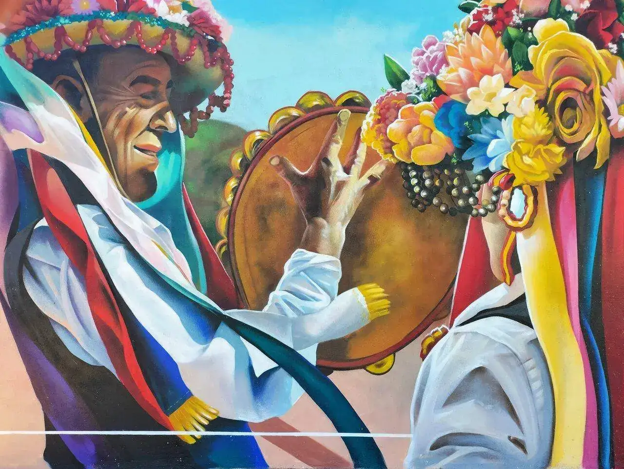 Aquí ante un mural sobre artes musicales malagueñas.
