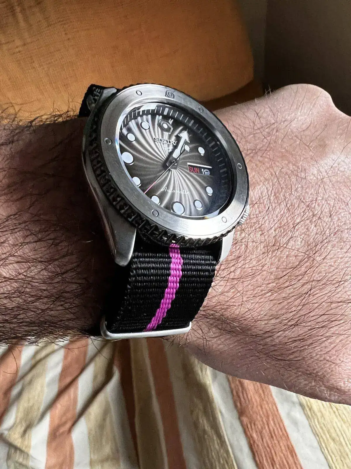 @jdortega ese fue el motivo principal de la compra de este reloj (la esfera), es un modesto 5 sport pero la verdad, que creo que no he errado en su compra pues luce muy, muy bien. Con la correa que acabo de montarle parece otro reloj, creo que le sienta como anillo al dedo y lo cambia completamente.