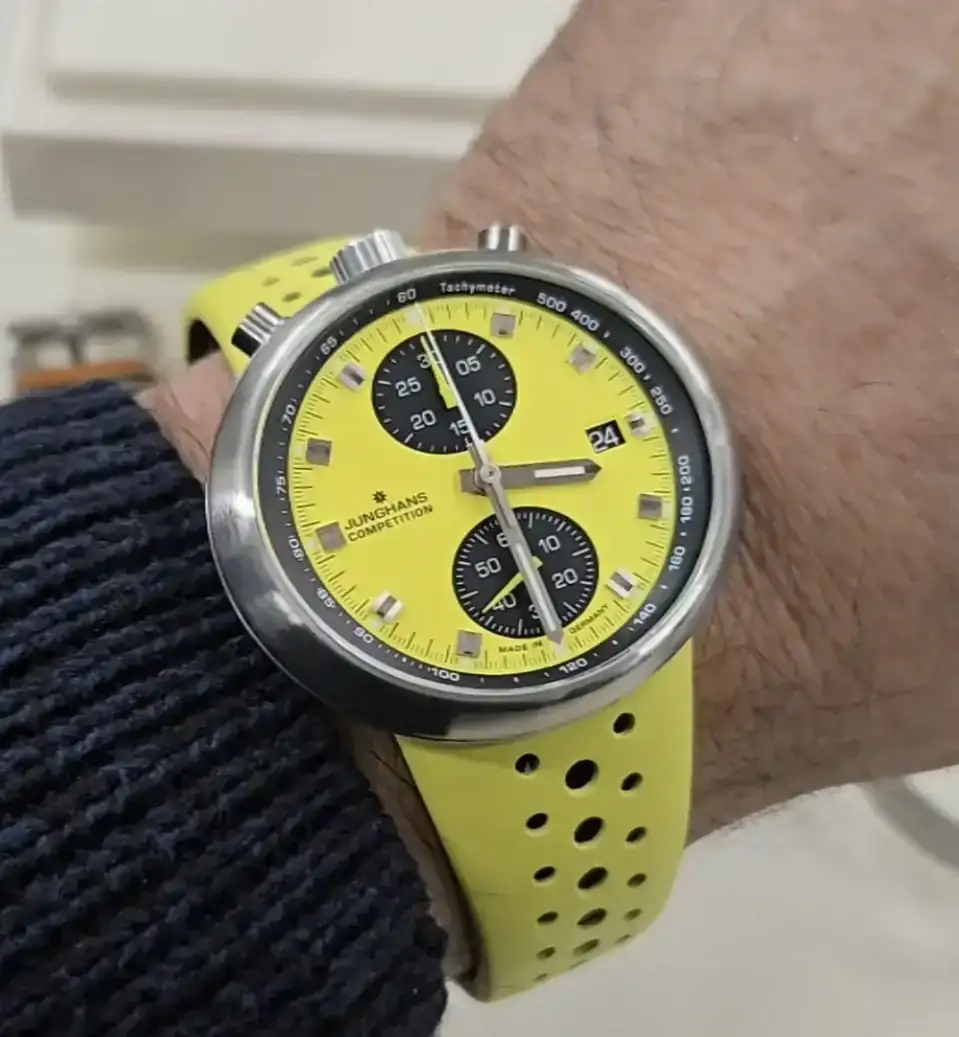 Muy llamativo, bonito si señor!!!Tuve la oportunidad de asistir a un evento de Junghans hace unos días aquí en NY, con toda su colección, pero me llamó mucho este 1972 Bullhead de ellos, a pesar de lo grande lo sentí bastante cómodo. Quise traerlo hoy. Un saludo, buena semana Ver el archivos adjunto 3389459