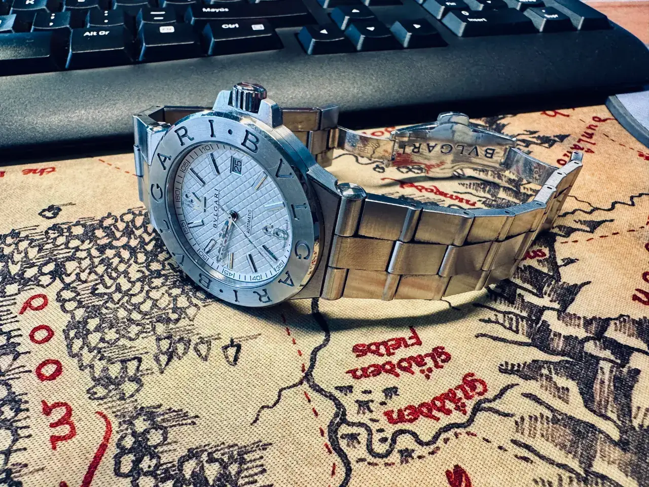 Hoy le toca a un viejo amigo lleva conmigo muchos años pero aún se mantiene como yo joven y fresco. BULGARI Diagono 40s en cuanto te lo pones tú muñeca gana kilates en foto no dice tanto. Buen lunes a todos !!!!