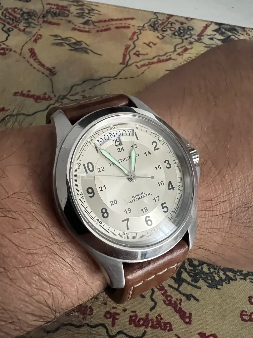 Gracias compa. El reloj es vintage (ya pasa de los 55 años) y me llegó con un armis genérico. Le puse esta correa de cuero comprada a un vendedor de ebay hace tiempo, y no le veo marca, lo siento.Me gusta mucho esa correa 👌