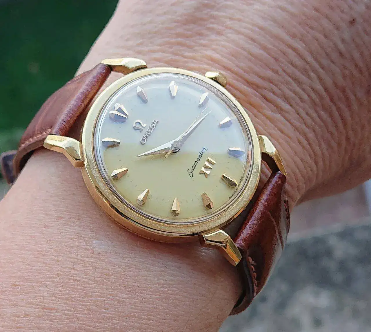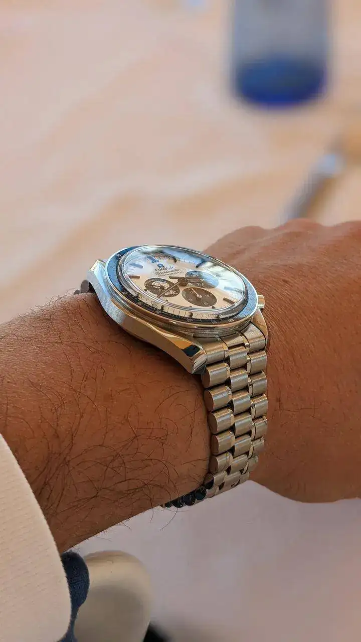 Exquisito!!¡Buenos días! Dos días sin reloj y regreso con el recién llegado que aun no he disfrutado como se merece. Retirándolo un poco de la luz, se aprecia mejor el avainillado tono de su esfera.