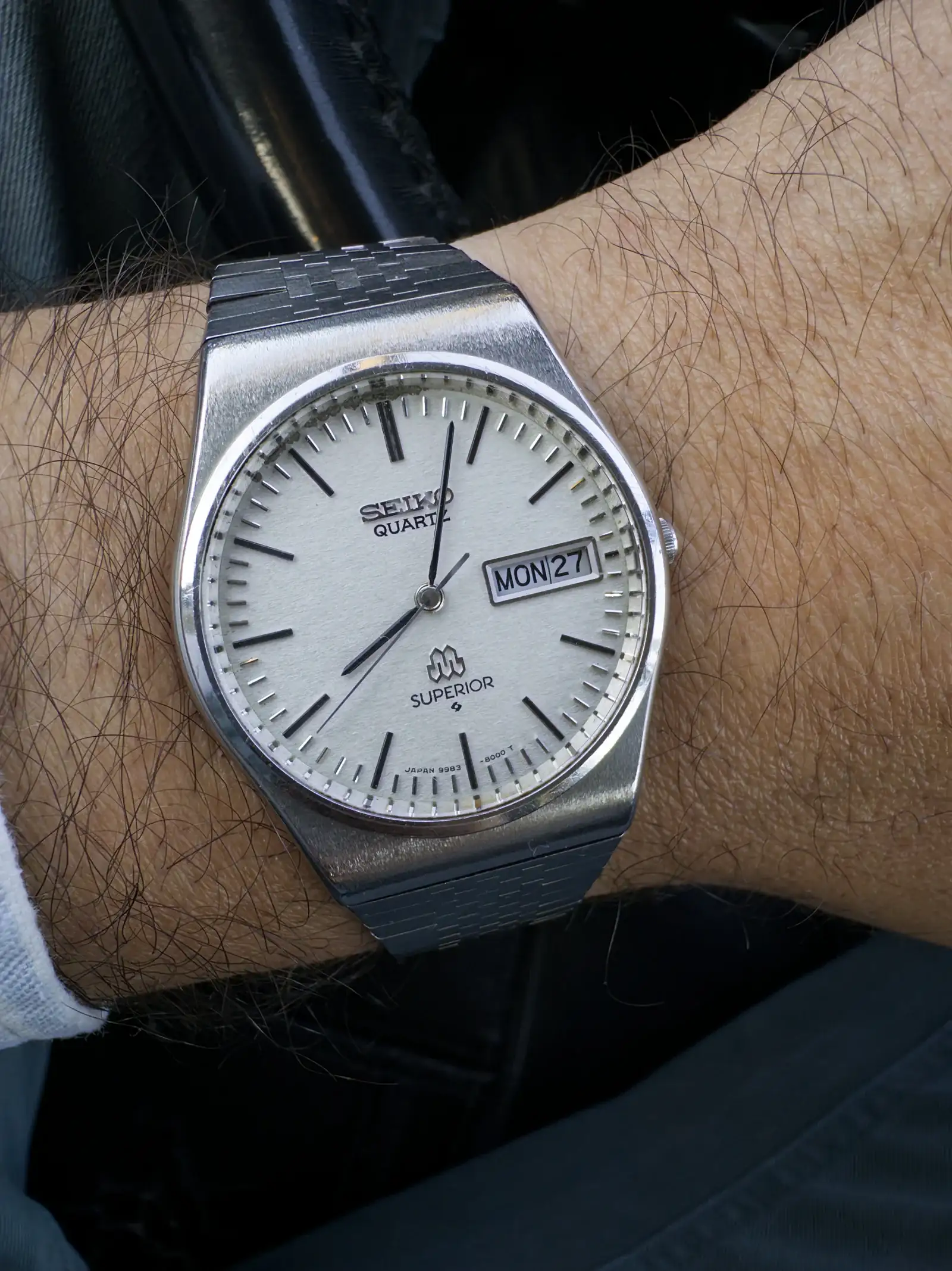 Buenos días , tengo una reseñilla pendiente sobre el cuarzo japonés de los 70 , y de muestra hoy os traigo este 9983-8000 superior el fulano estaba en +-5 seg día en su época y en el mes que llevo con el ha perdido 0 segundos . 🤤 saludos 🖖