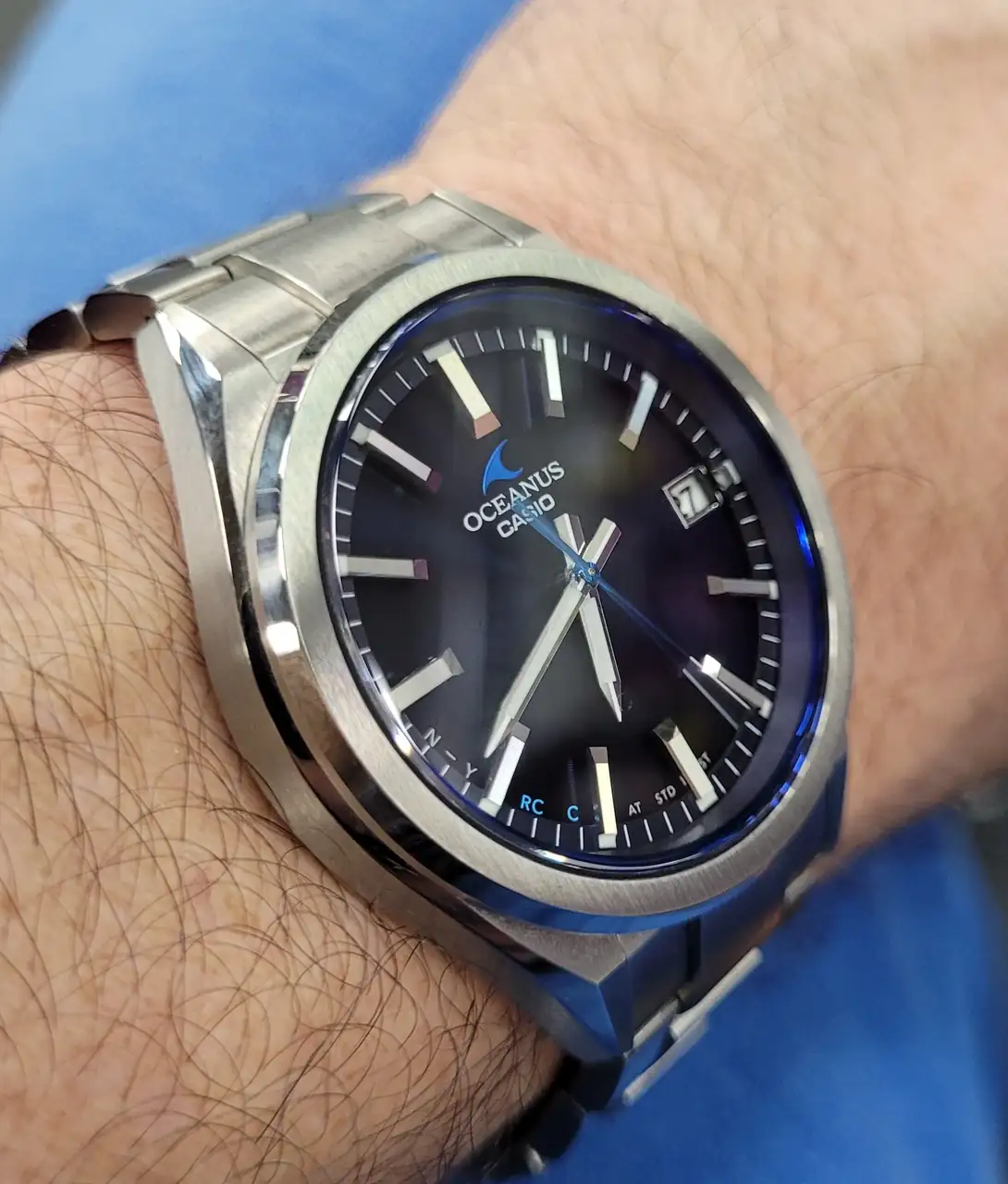 Ayer recogí los eslabones y hoy lo he estrenado… Pero creo que volveré a la correa de piel.Olé , muy chulo con brazalete también