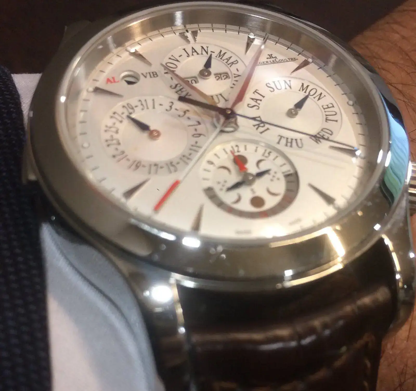 Como curiosidad, la aguja GMT creo recordar que originalmente marcaba las 20 horas a las 24, y mi relojero después de revisarlo me dejó la aguja GMT marcando las 24 también, por lo que ahora ésta aguja me sirve tabién de aguja 24h.