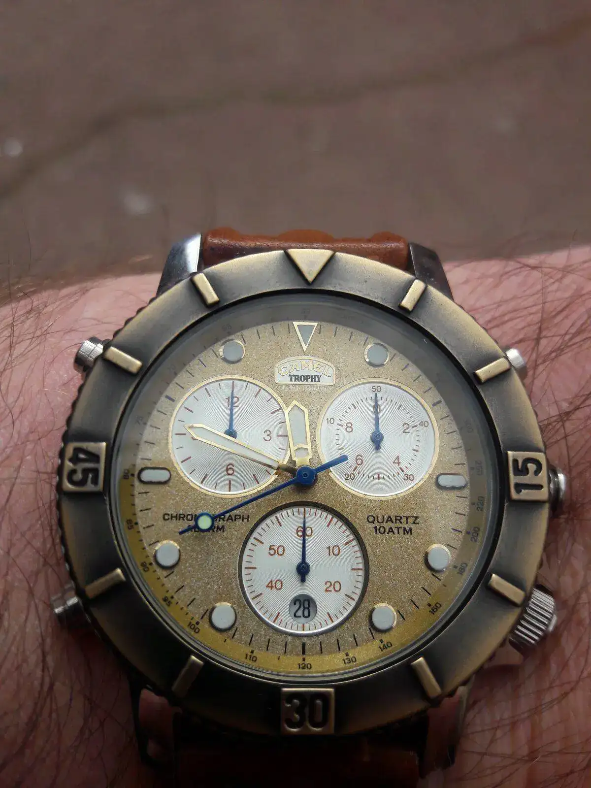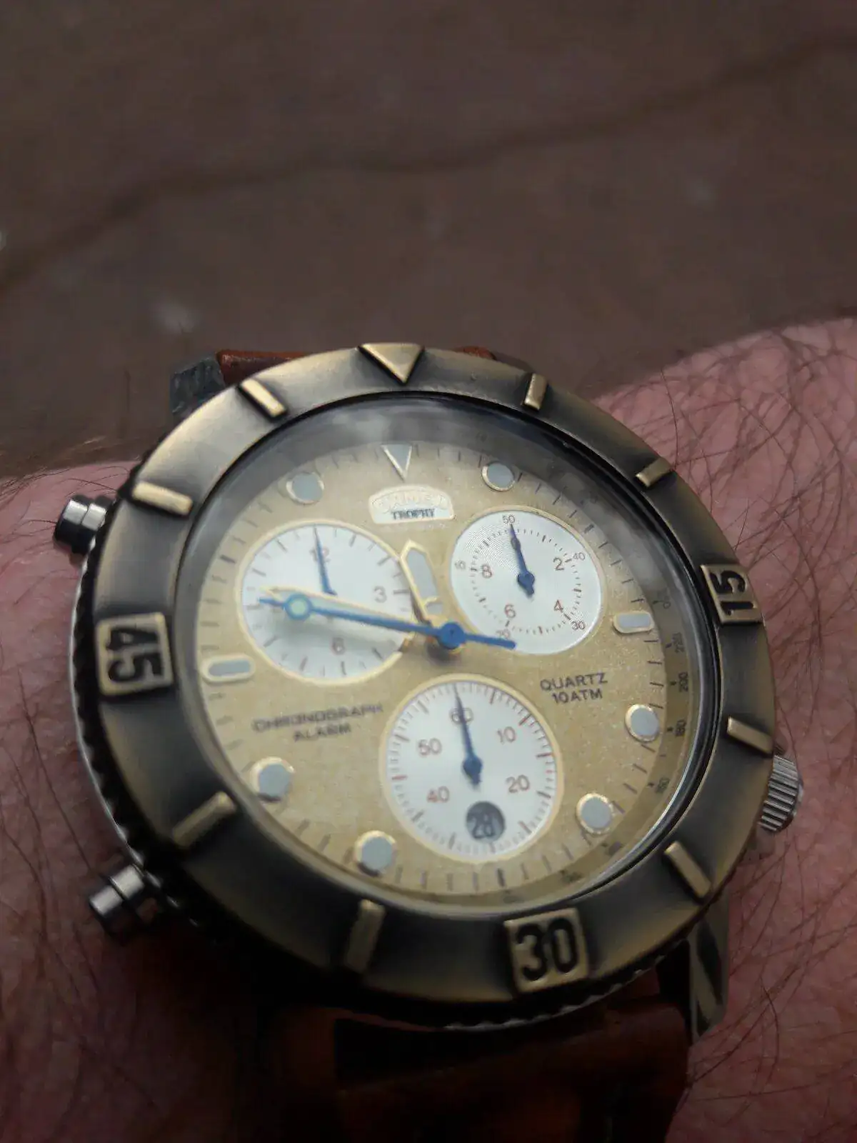 Hacía mucho que no veía uno de estos. Me consta que un amigo aún conserva el suyo.Buenas tardes distinguida concurrencia. Hoy con un Camel trophy super chrono con miyota 3s10 en estado NOS. Ver el archivos adjunto 2380488Ver el archivos adjunto 2380487