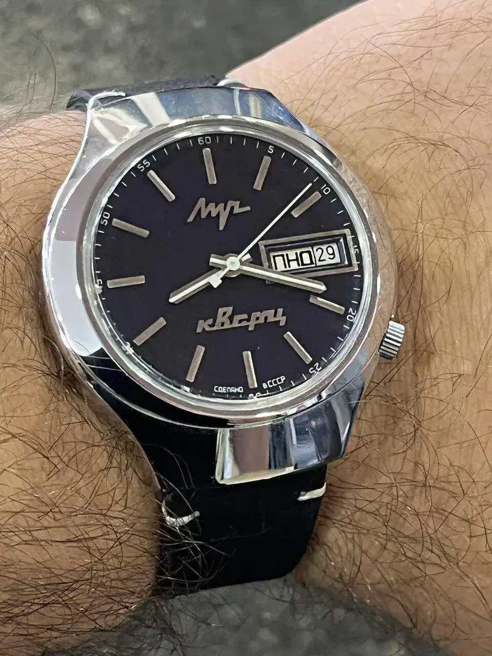 Yo diría que debe de ser de la época de mi azulito, porque índices y agujas son clavaditos; el brazalete también tiene un toque familiar de esos principios de los 70... A ver si tienes suerte, se bajan un poco de la burra y te lo traes para casita![]()