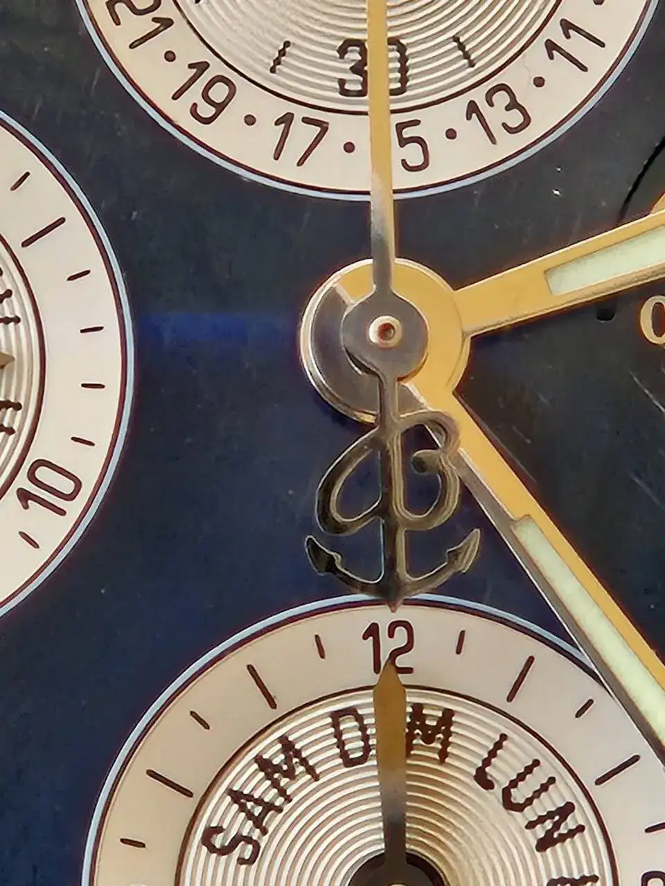 Hoy para entrenar no lo tengo claro, pero será uno de estos Technomarine. Tuve la suerte de hacerme con el primero, de esfera madreperla color Tiffany, a través de un comerciante profesional de Chrono24. Lo compré hace unos 3 años a muy buen precio siendo NOS, y por ello cuando lo recibí me ofreció el segundo a un precio también que no pude negarme. Estos modelos costaban un dinero cuando se comercializaban entonces, década de los 90, y eran al cambio como unos 1.800 € de hoy, al llevar montados en bisel piedras preciosas, diamantes en el primero de esfera azul, y rubíes y diamantes en el de esfera madreperla blanca. Technomarine fue creada por Franck Dubarry, aficionado a jugar al polo, como un reloj deportivo informal y divertido de lujo. Era el denominado "Swatch del rico", en aquella época y fue un reloj muy, muy popular. Dubarry ha sido también productor de cine, con películas como Ruleta rusa.