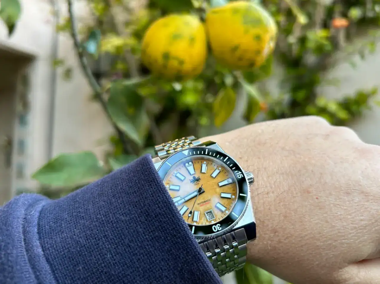 Que chulada el dial del Phoibos, una micromarca a la que tengo muchas ganas...Feliz lunes y terminando este año. Hoy de amarillo limón . Ya puedo hacerme buenos gin tonics , tengo el árbol a rebosar .