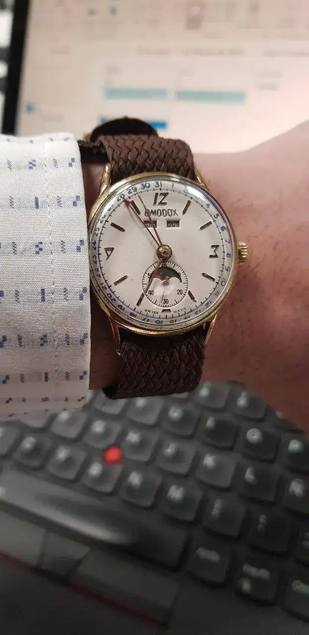 Setentero, ya sabesTambién había caja con brazalete integrado, pero ésta me gusta mucho más, y además permite usarlo con más cosas que el acero