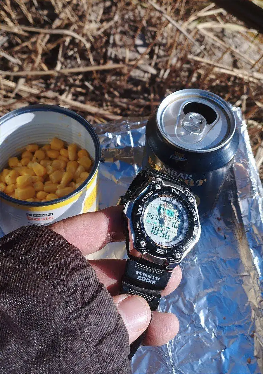 Con mi Casio de pescar, el más antiguo de mi caja…