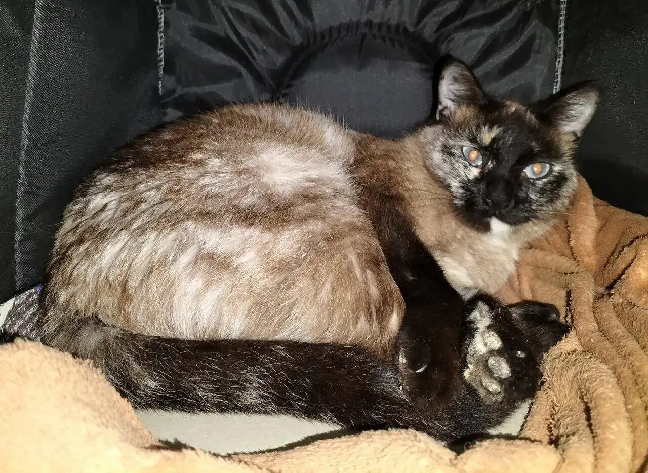 La Siamesa es esta.De maravilla, se han criado juntos casi. Hasta comparten cama.