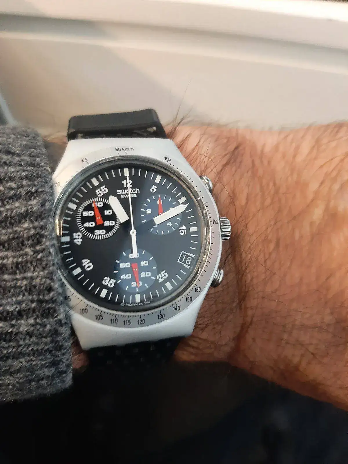 Pues lo tengo hace mil! Es de la marca fossil pero lo diseñó el famoso philippe starck , arquitecto y diseñaror de todo lo que se le ponga por delante, por ejemplo el exprimidor de alesso, un termostato inteligente de netatmo… la alhóndiga de bilbao (ahora azkuna centroa) fue diseñado también por el, a mi todo lo que hace me encanta y como no podía ser de otra manera tenia que tener un reloj diseñado por el! 😉, recuerdo que habia otros colore, correa blanca y display naranja creo recordar.Tiene su QUE. Cuentanos algo sobre ese reloj.