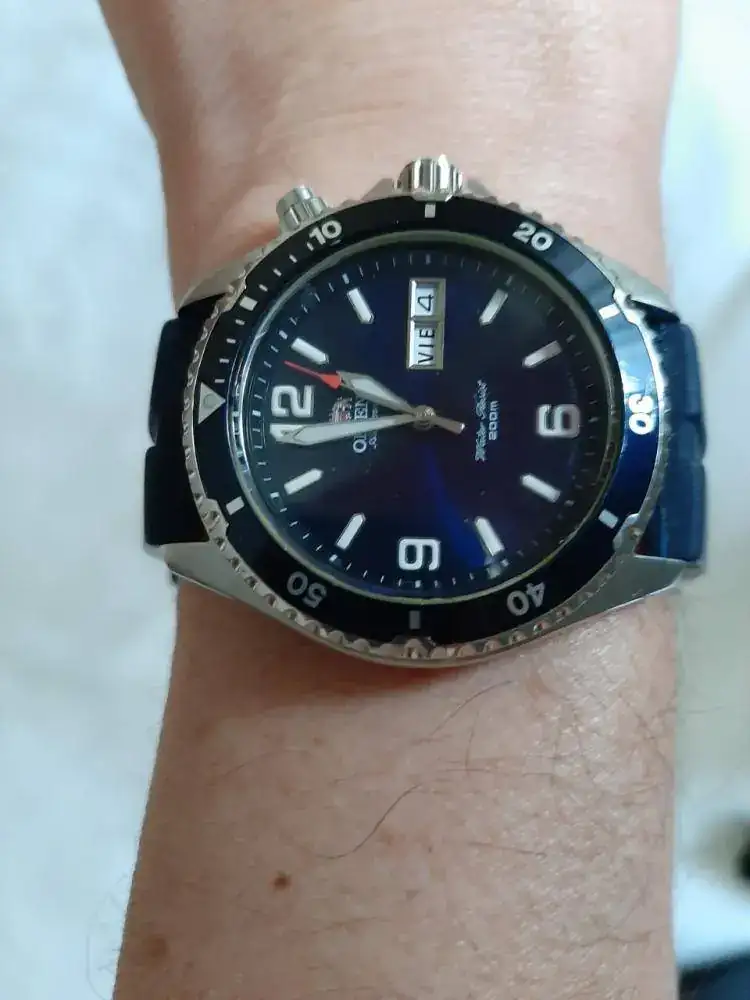 Hoy llevo mi veterano Orient Mako 1, que he sustituido su buen armis de acero, por una más cómoda correa de silicona. Un reloj con buena relación precio producto, aun fabricado en Japon.