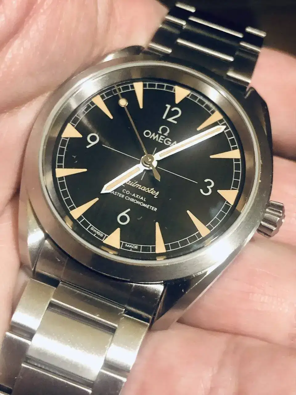 Gran foto. Precioso el Omega. Es con alarma??Esta en día, así que este a la muñeca.