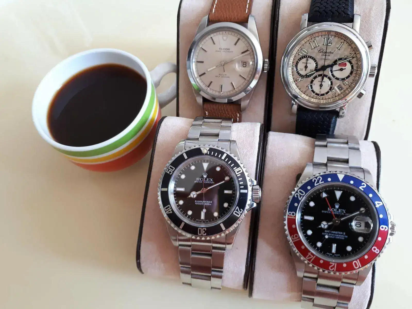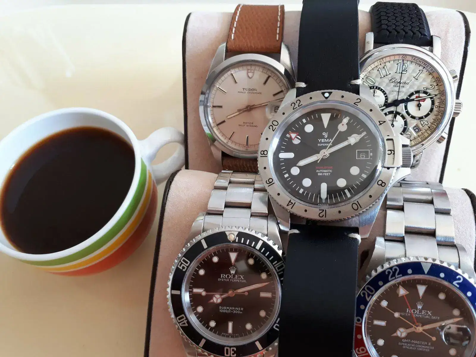 Hoy, como cada día, me he tomado un tiempo eligiendo el reloj que debía llevar, el tiempo de reflexión que dura tomar un café. Estos eran los elegibles para hoy...
