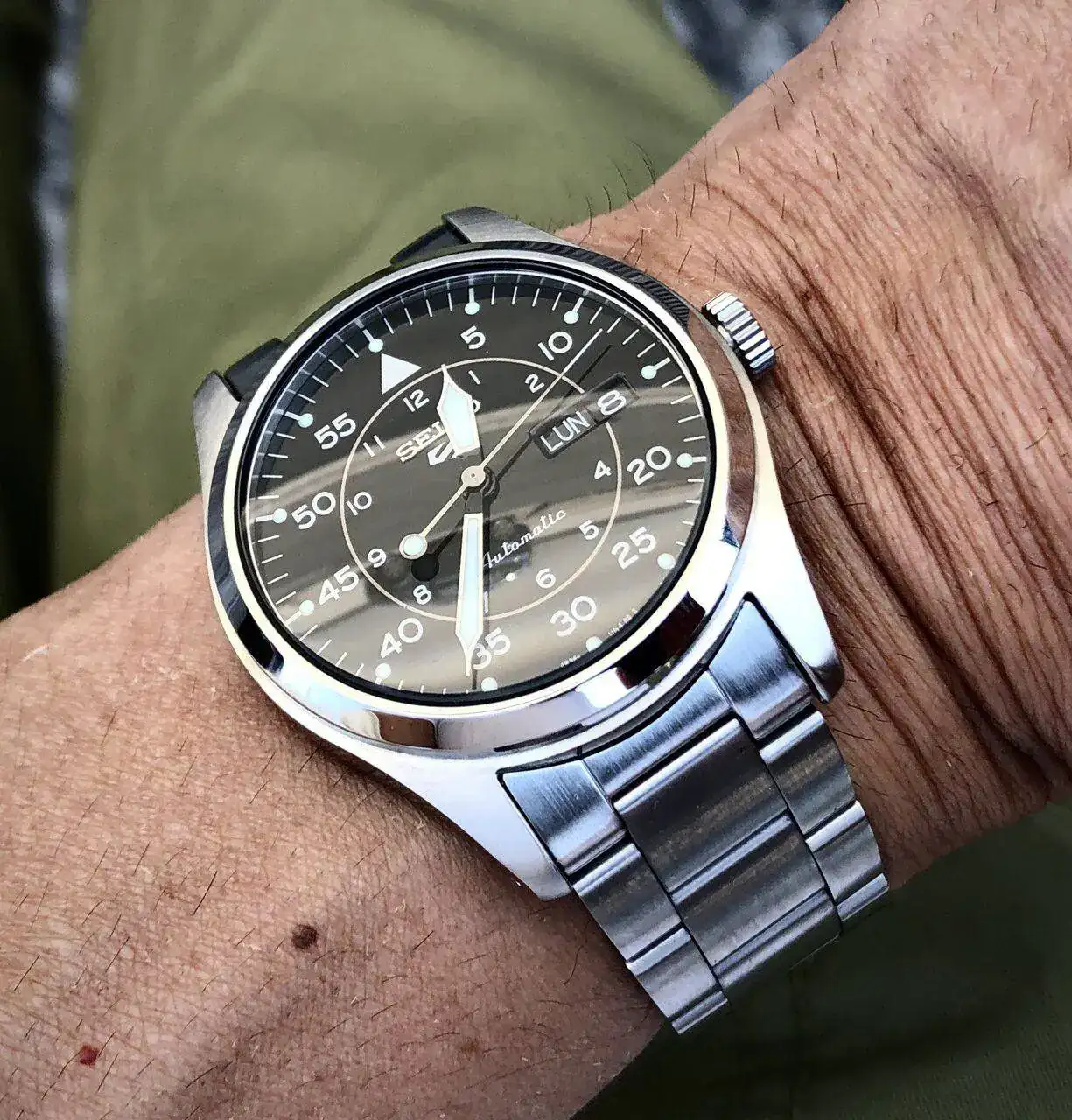 por lo que cuesta no hay queja posible.lo tengo hace meses y me sigue sorprendiendo su precision.No tiene parada de segundero pero darle cuerda es como hacerlo a un reloj hace 40 años,delicioso.Buena construccion,acero y pulidos.