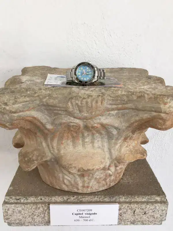 sobre un pedestal o bine llamado ''capitel'' visigodo .que nivel el mm...¡¡¡ me gustaria tener ese capitel en casa para los reojes