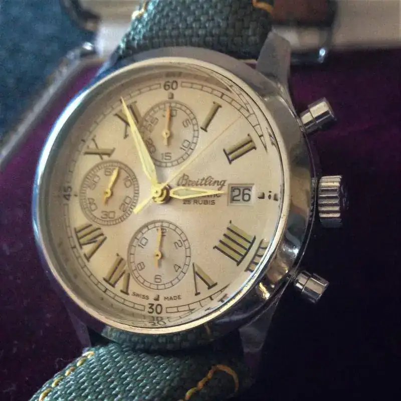 A punto de ponerme mi Breitling Navitimer. La correa venía con él y es de un Citizen, la verdad es que le va al pelo.