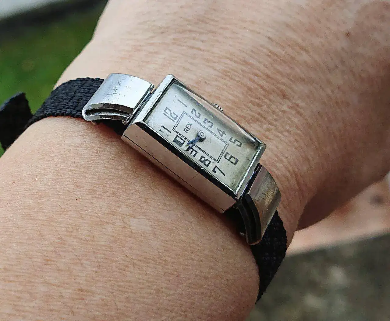Muy bonita foto y un reloj muy chulo con intangibles.¡Buenos días! Hoy cumple años un apreciado maestro del sótano vintage, y para tenerle especialmente presente en su día consultaré la hora en este encantador Rex de asas móviles que él me regaló