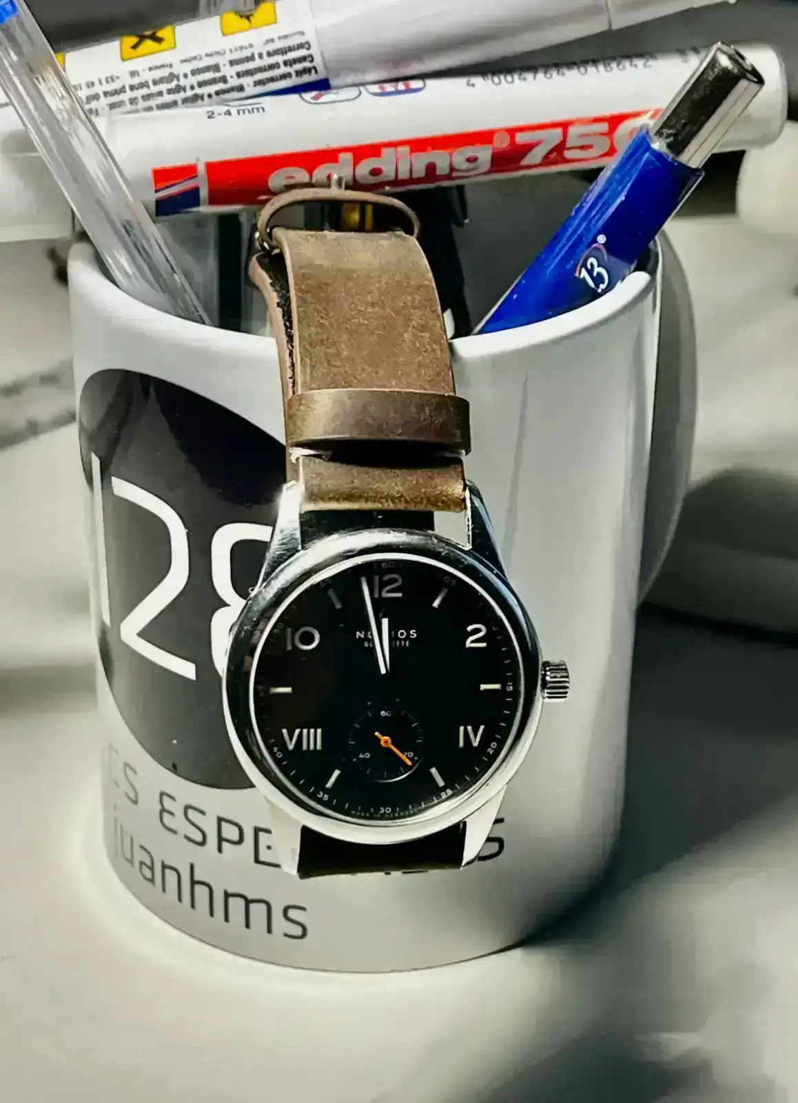 Buena foto,, le queda fenomenal ese cuero a ese Nomos tan guapo
