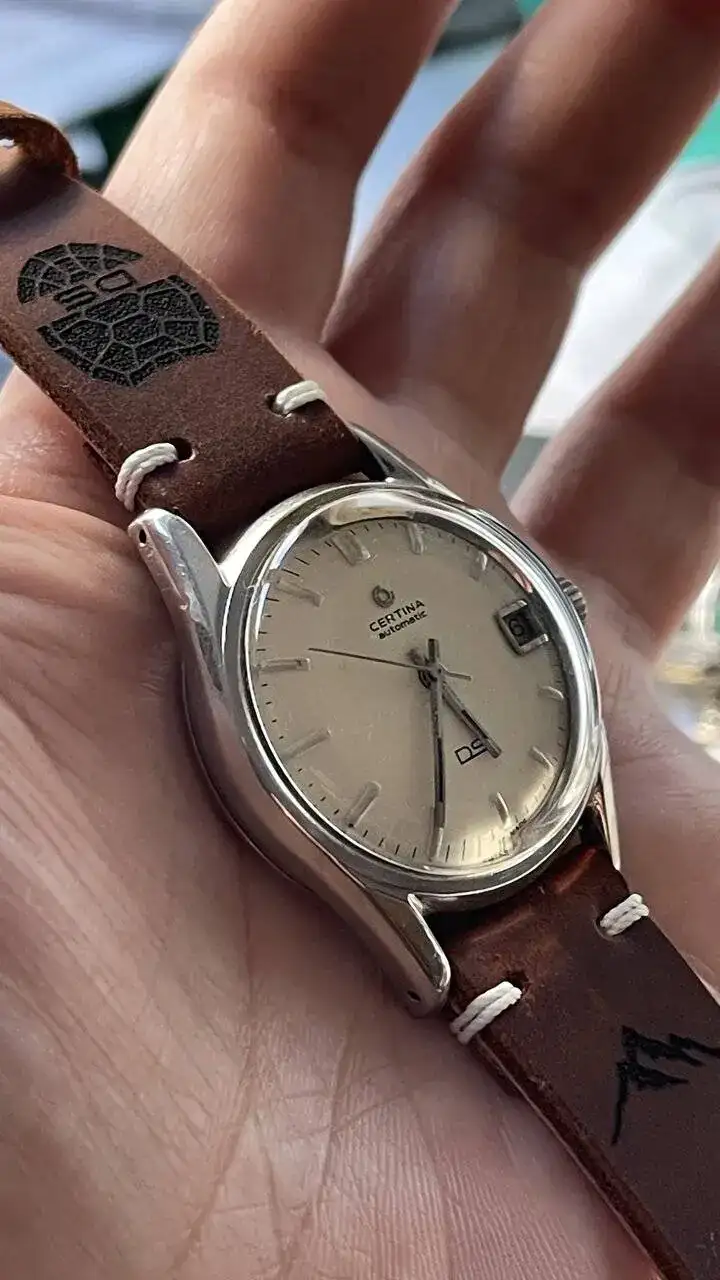 Hoy quería postear la correa personalizada del compañero Zero para este Certina ds del año 63 , canela fina oiga