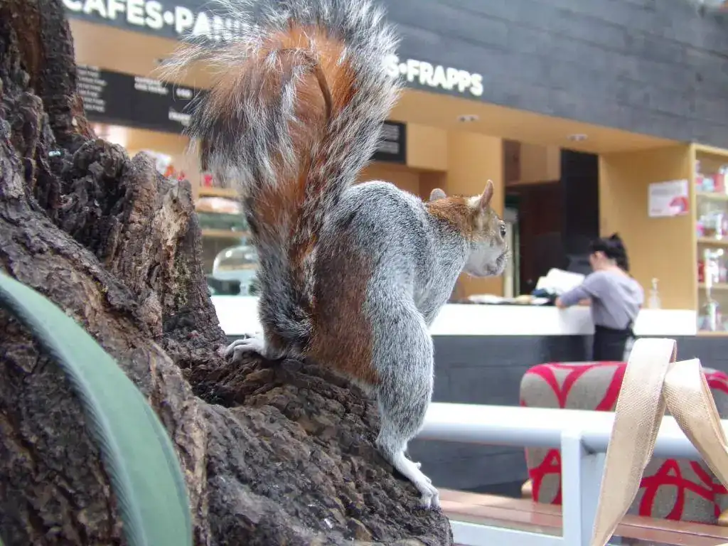 El día que visité el Palacio de Chapultepec tuve un encuentro fortuito con Lupita, que es una ardilla que vive a sus anchas como dueña y señora del bar y librería al costado de la entrada del parque donde está dicho palacio.
