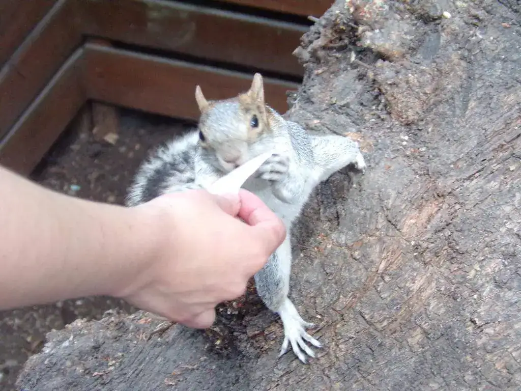En la foto final mi amiga enfrascada en mandar sus fotos hechas con el móvil a la vivaracha Lupita, el árbol donde se desarrolló la trama y yo aprovechando para sacar una imagen de la casa de la ardilla. A ver si cuando vuelvo - ojalá que pronto - todavía está esta señorita.