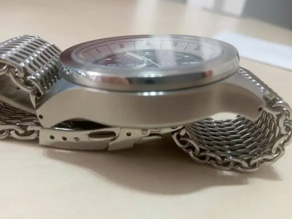 Se vende sólo el reloj, es decir, sin correa, caja ni documentación. Adicionalmente podría incluir la milanesa con extensiones en H por 10 euros más.