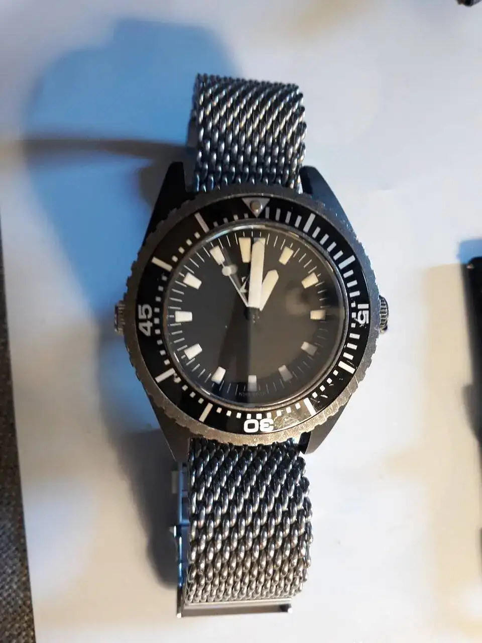 Le acabo de cambiar pila en mi relojero de confianza, aunque no le he hecho hermetismo, me consta se le ha cerrado bien y para baños en mar o ducha sin problemas. Le entrego con su correa de caucho negra