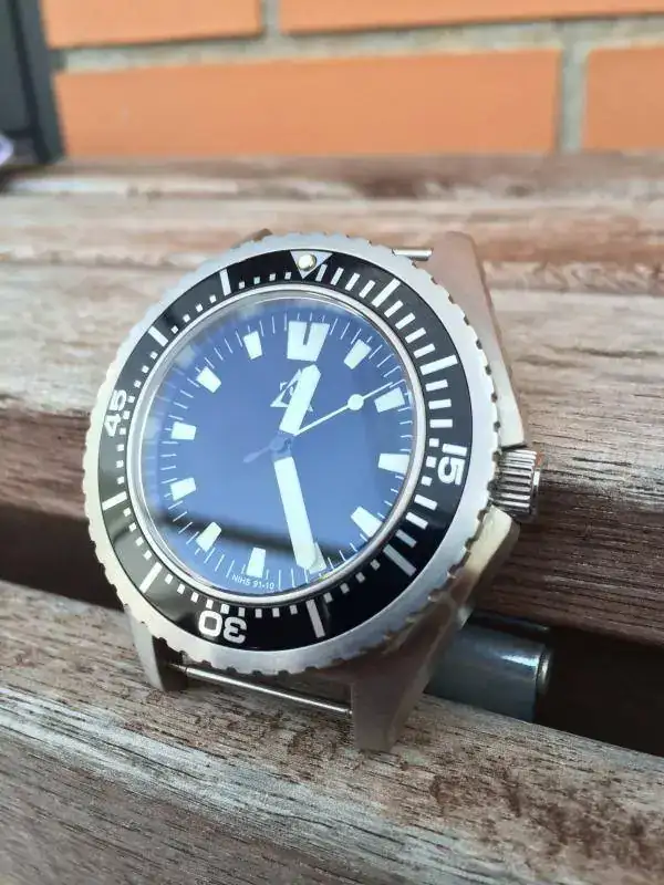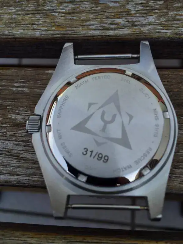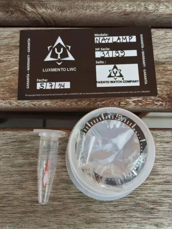 Se entrega en caja "rescue Box" con una zulu negra y una correa vintage marrón de dos piezas. Adjunto un insert nuevo a estrenar y un juego de agujas plongeur.