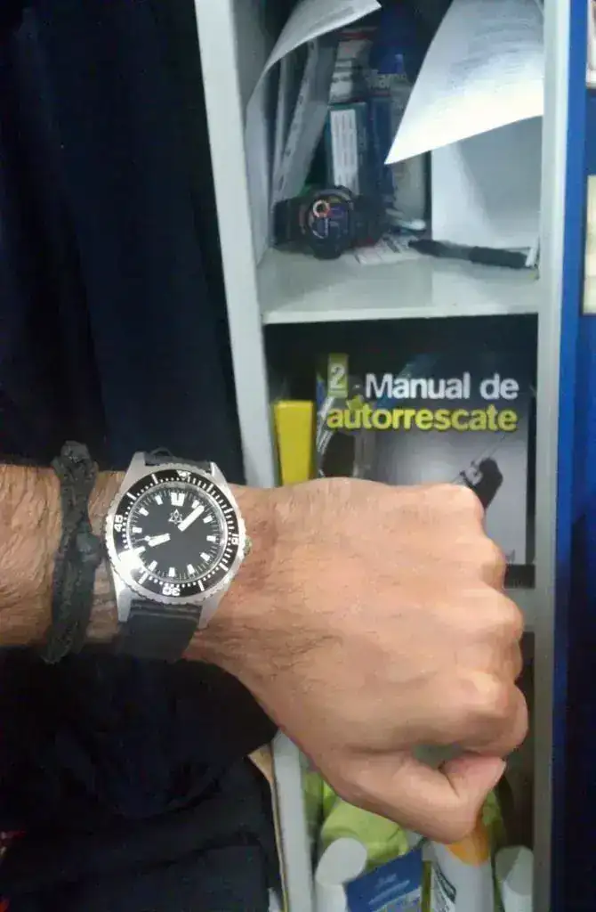 - El diámetro de 44mm lo hace un reloj contundente, pero por la forma de sus asas también cómodo y ergonómico. En mis 16.5cms de muñeca yo me lo he visto perfecto 😛