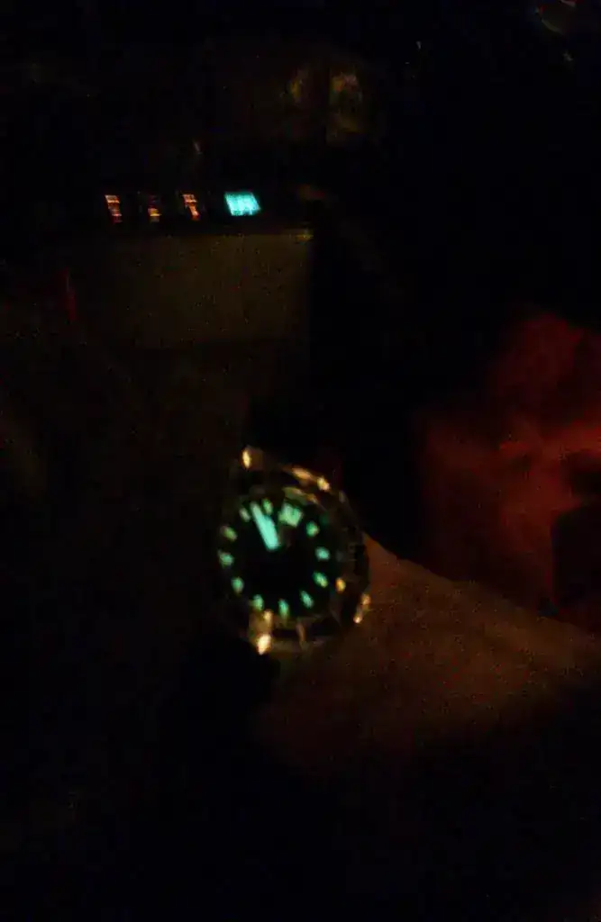 - El Lumen tanto de los índices del dial como de las agujas es espectacular.....tienen una gran luminiscencia y aguanta sin problemas toda la noche, todo ello gracias a la aplicación de la Superluminova C1/C3......la marca de identidad de Ángelo