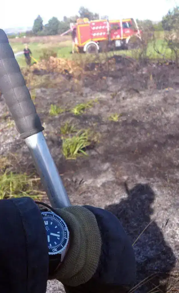 (17:45) Nos alerta el SOS Rioja de una columna de humo muy grande visible a unos 10 kms de la ciudad.....los incendios de vegetación y maleza en bosques y zonas rurales son trabajos bastante costosos y penosos.....se suda la gota gorda a base de bien y acabas molido!! En este caso no fue mucha cosa, pero aún así fue palicilla :sweat: