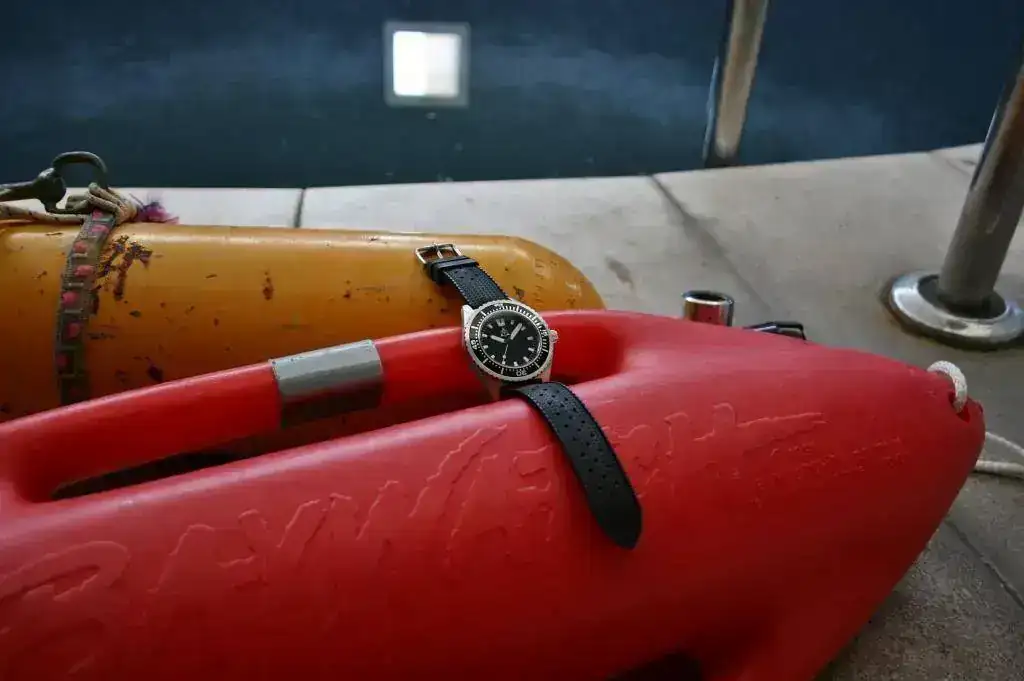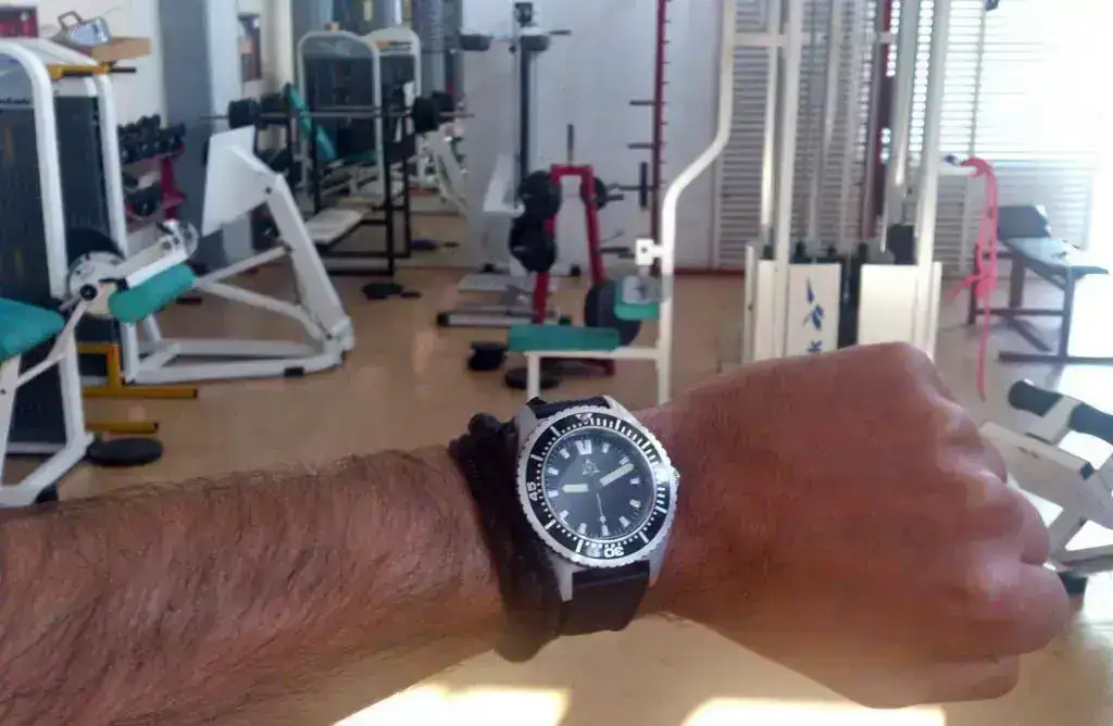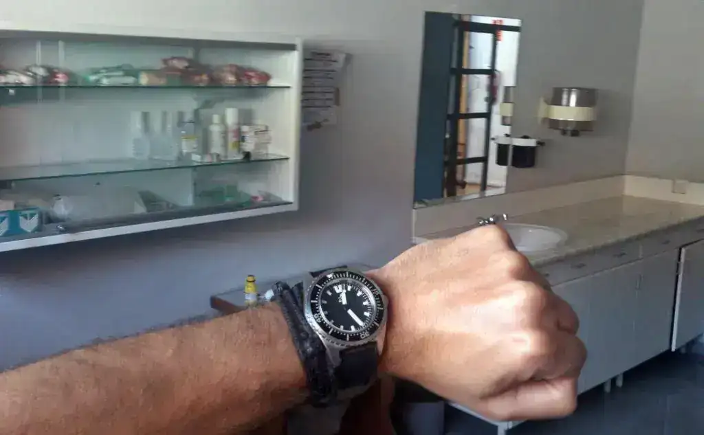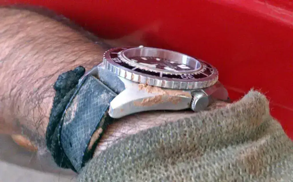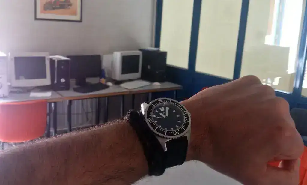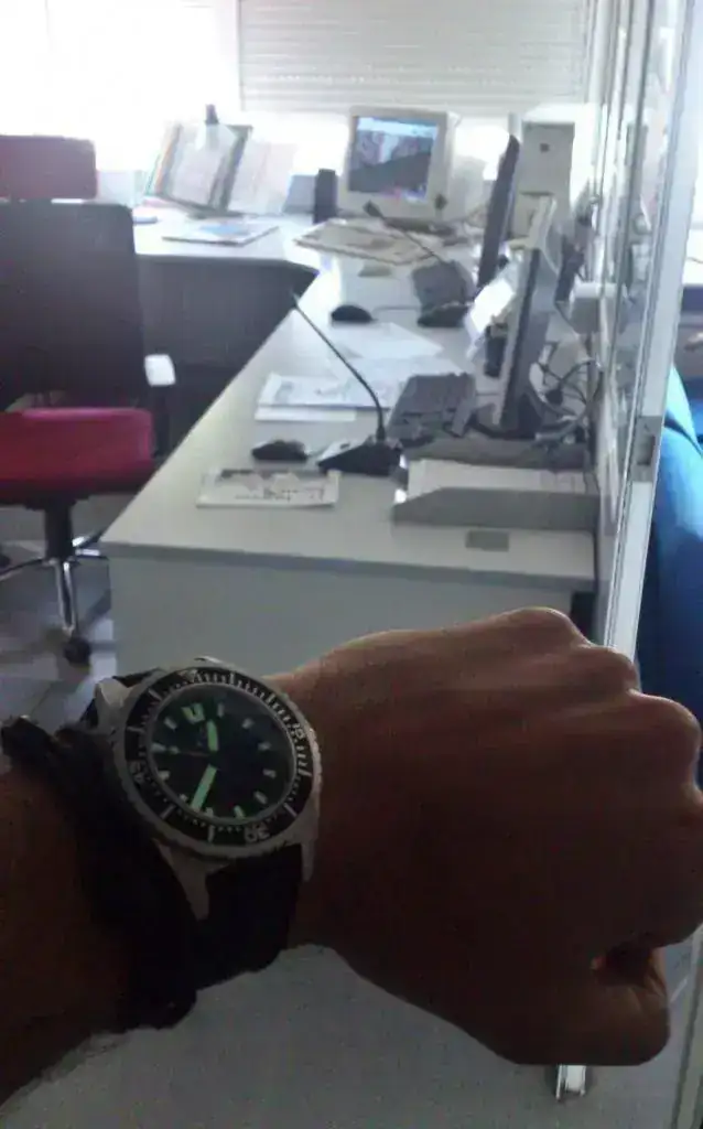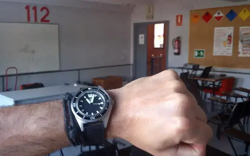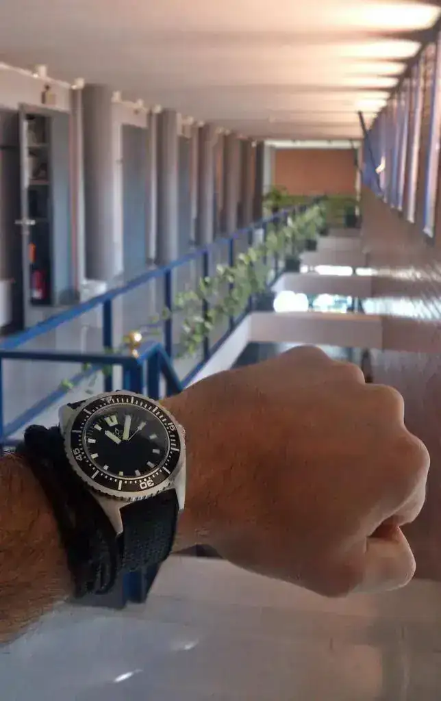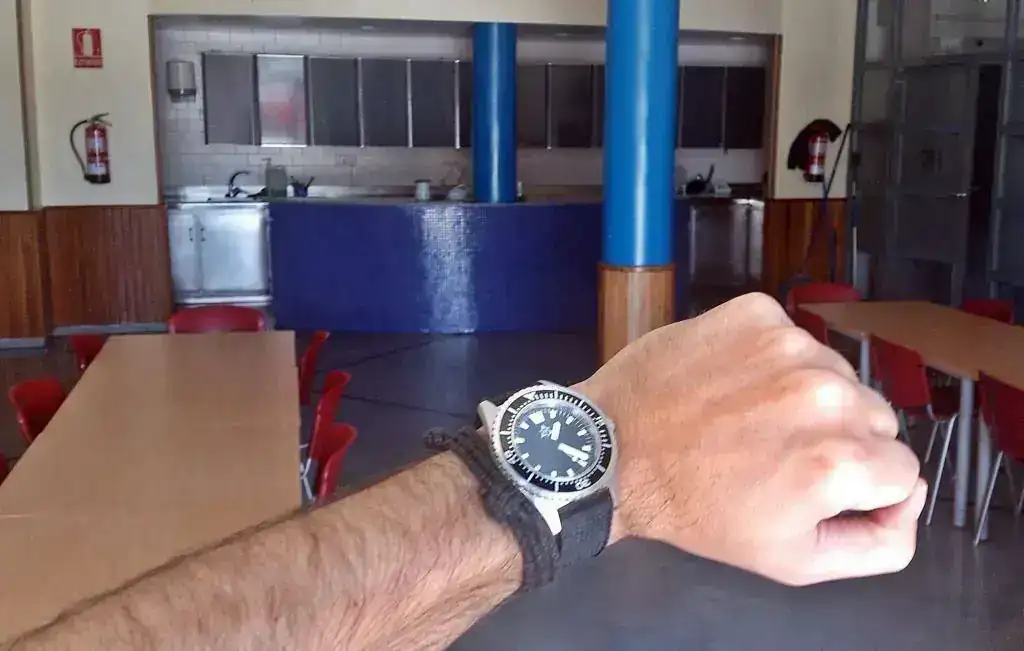 Lo primero que hice para usarlo en el curro fue cambiarle la Nato por una "Tropic" de caucho, que para mi gusto es más cómoda de llevar y más fácil de quitar y poner de la muñeca, aunque bien es verdad que en caso de golpe o de que algún pasador del reloj se salte la nato es la correa más segura que puede haber....para gustos.....😛