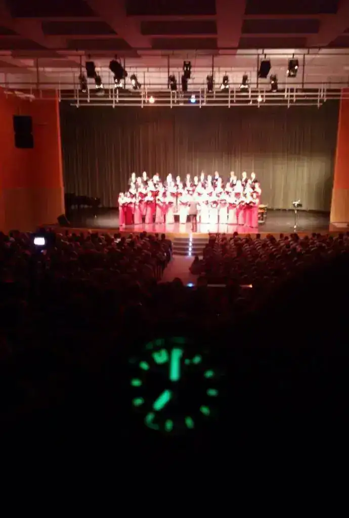 Y sin casi un minuto para descansar salgo con otro compañero a hacer una prevención de un espectáculo programado en el Ayuntamiento.....hoy toca canto del Orfeón.....la música amansa a las fieras......y mi Naylamp en la oscuridad viene de perlas para saber qué hora es.....:grimace: