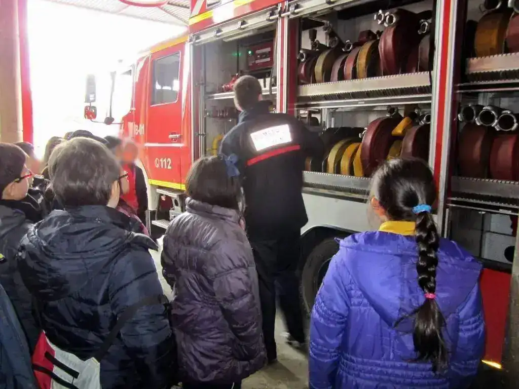 Hay una broma bastante graciosa que solemos hacerle a los niños, y es que cuando les estamos enseñando el material que llevan los camiones hay uno de nosotros metido en uno de los cajones del camión esperando a escondidas......entonces al levantar la persiana el compañero que hace la visita empieza a explicar el tipo de material que lleva el vehículo como si nada....."...y aquí tenemos las mangueras.....los extintores.....los equipos de aire......aquí el "bombero de reserva".....aquí el generador eléctrico.....las herramientas......etc...."....y entonces vuelve a cerrar la persiana del camión con el bombero dentro y abre otro armario y sigue con la explicación......mientras tanto los chavales con una cara de asombro se miran entre ellos flipando......un bombero de reservaaaa!!...jajaja